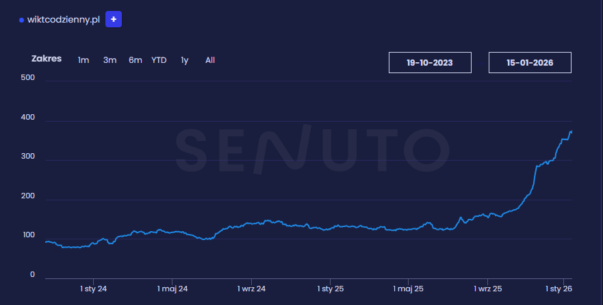 Współpraca z cateringiem pudełkowym Wikt Codzienny rozpoczęła się 1 marca 2025 roku i od początku obejmowała m.in. działania SEO. Celem było zwiększenie widoczności organicznej w Google oraz wzrost ruchu z wyszukiwarki w oparciu o porównywalne dane historyczne. Efekty były mierzone na podstawie Google Search Console oraz monitoringu widoczności fraz w Senuto.